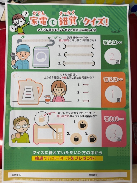 今回は「ぬりえ」だけでなく、「家電クイズ」も招待状に同封しました。